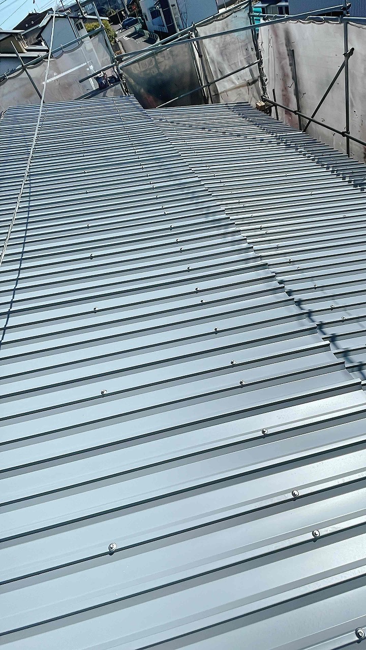 屋根のカバー工法工事は明日完工予定となっており、5日ほどあけさせていただいて、外壁のトタンの貼り替え工事をさせていただくことになっています。