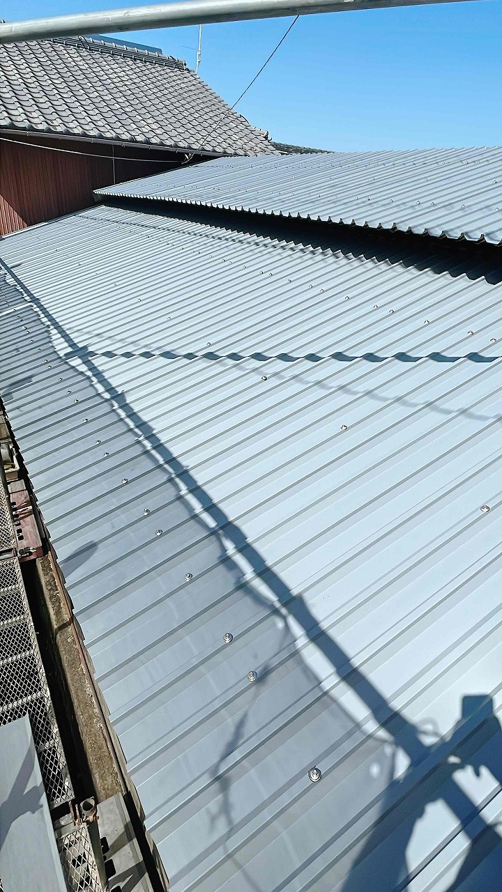 香川県さぬき市長尾I様邸にてスレート屋根カバー工法(ガルバリウム銅板)の工事を行いました!