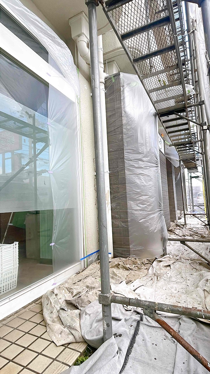 明日が日曜日で職人が休みのため、月曜日より本格的な塗装作業が開始します。