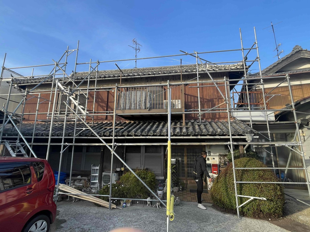 香川県東かがわ市吉田にて瓦交換(葺き替え)工事の足場を設置いたしました!