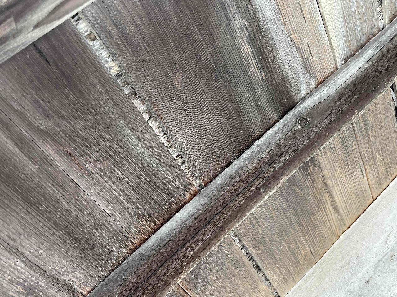 事前調査させていただいたお写真がこちらで、瓦が経年劣化により割れや隙間があり、お家に浸透(雨漏り)している状態でした。