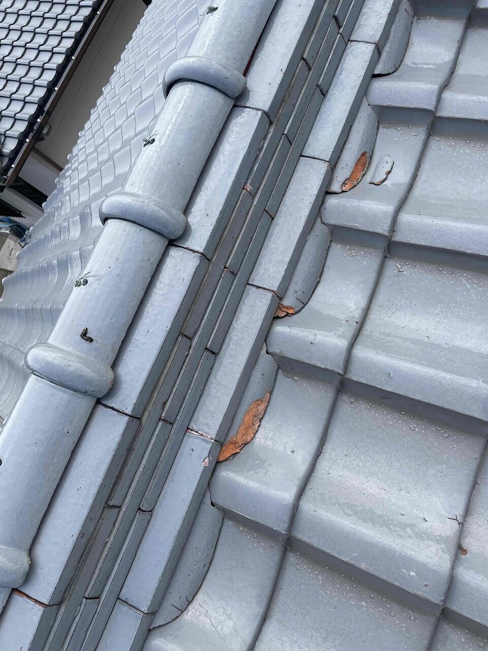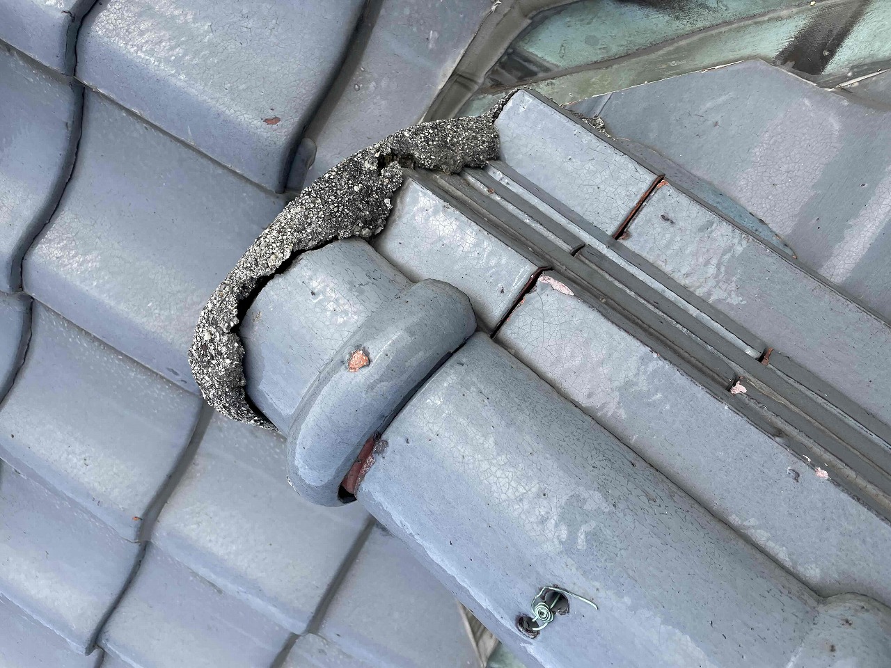 見ると、経年劣化により瓦が割れているところや漆喰が剥がれているところが何カ所かありました。