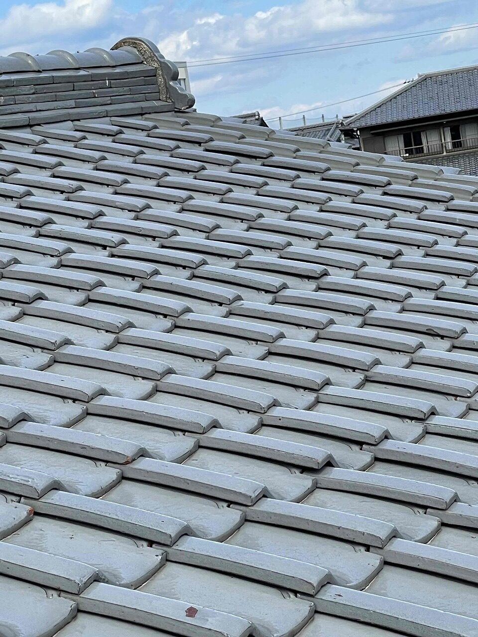 平地瓦は浮きが出てきており、浮きが大きいところでは小指が入るほどでした。これでは横殴りの強い雨が降った際に瓦の隙間に雨が侵入し雨漏りしてしまいます。。こちらを弊社で瓦を元の位置に戻し隙間に雨水が浸入しないようにする工事をさせていただいただくことになりました。