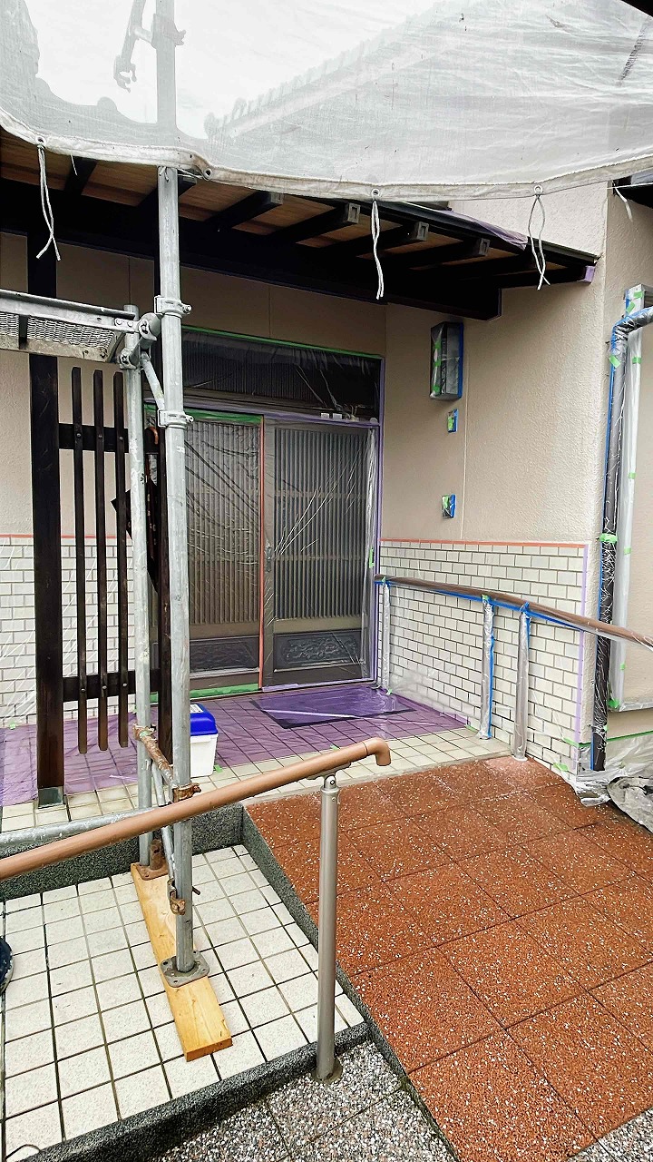 香川県高松市香南町西庄O様邸にて外壁塗装工事の養生作業を行いました!