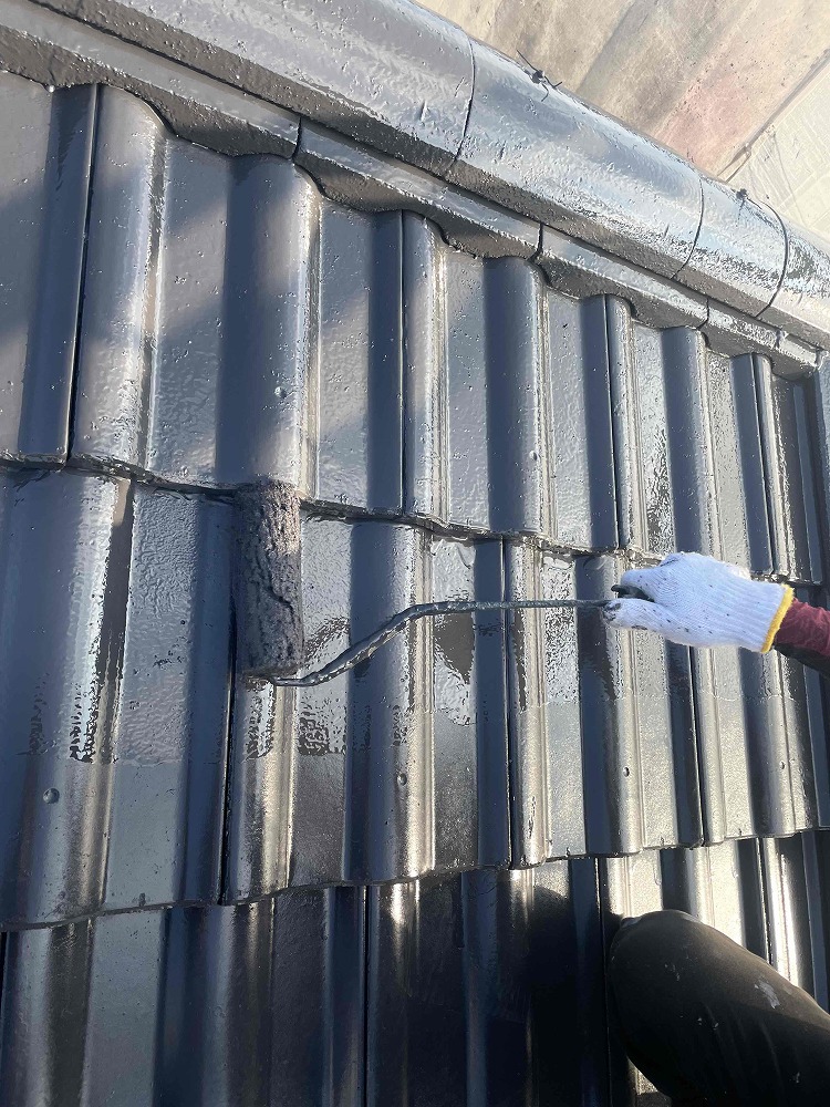 香川県高松市香南町S様邸にて、屋根の中塗り~上塗りを行いました。