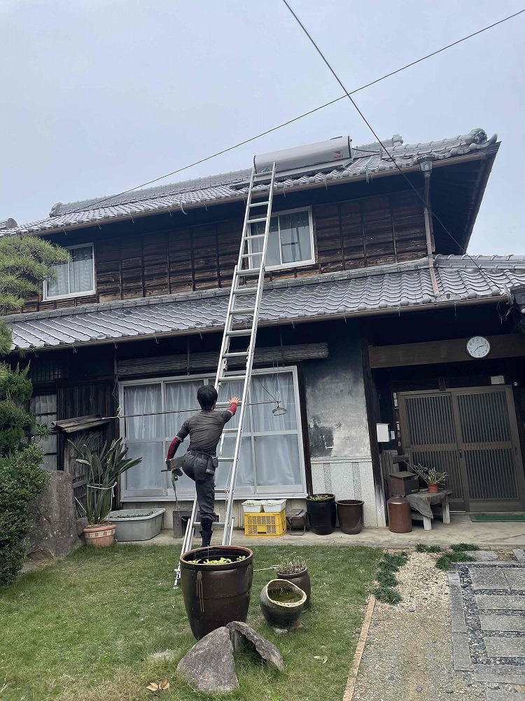 香川県木田郡三木町にて使用していない太陽熱温水器の撤去を行いました。