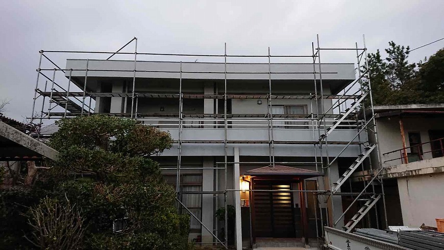 外壁の状態が悪い箇所が複数あるため、塗装する前に年内に左官工事をし、年明けから外壁の塗装工事にうつります。