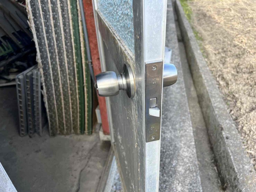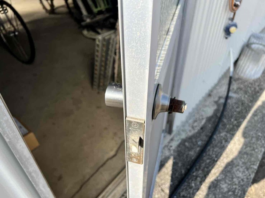去年は外壁塗装工事、今年はスレート倉庫の塗装工事をさせていただいた香川県木田郡三木町W様邸にて、スレート倉庫のドアノブの交換をさせていただきました。