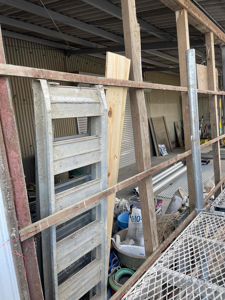 スレート倉庫の屋根・外壁塗装工事は昨日終了しており、残りの外壁トタン張替え工事を行っております。
