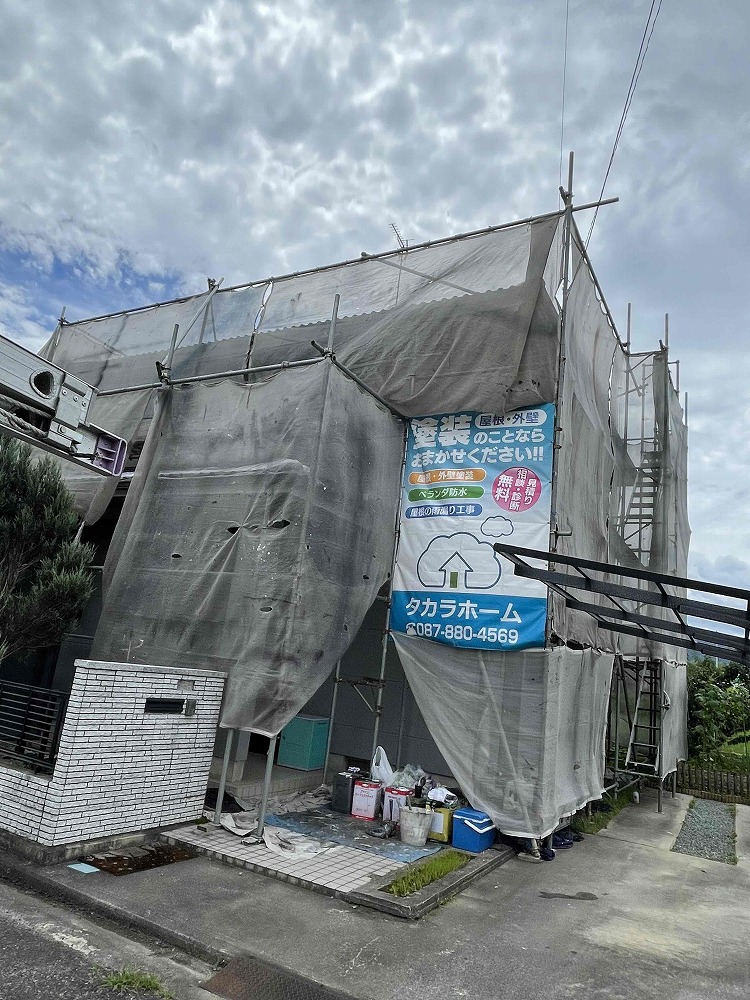 ご施主様もまだ足場は外していませんが、外壁の色・仕上がりともに大変満足していただいているご様子でした!