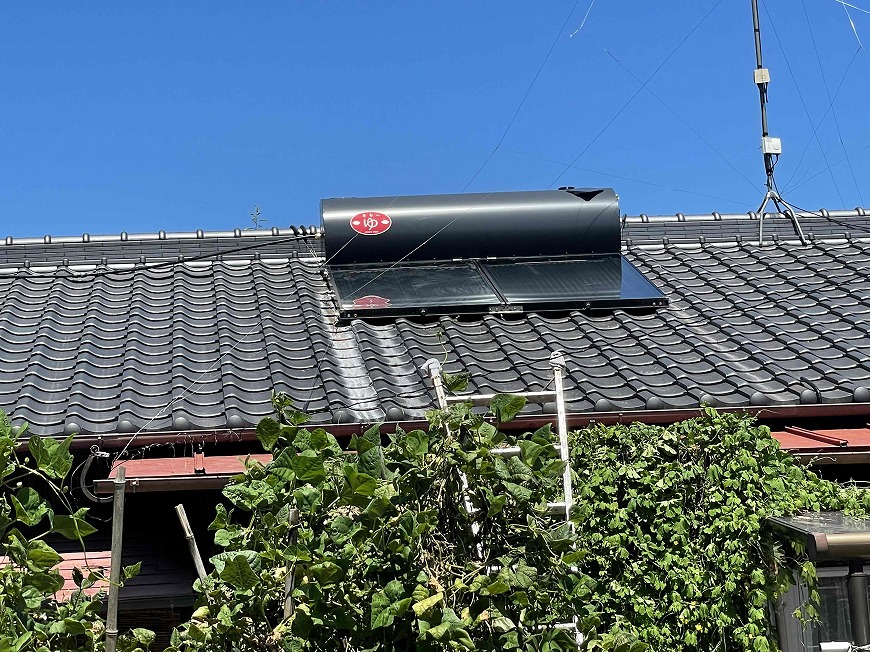 元々水漏れしていた太陽熱温水器を撤去・処分し、2年使用の中古ソーラーを備え付けさせていただきました。