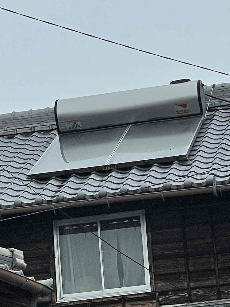 太陽熱温水器が水漏れしている香川県木田郡三木町Y様邸にて、太陽熱温水器の撤去と木部破風塗装のご契約をいただきました。