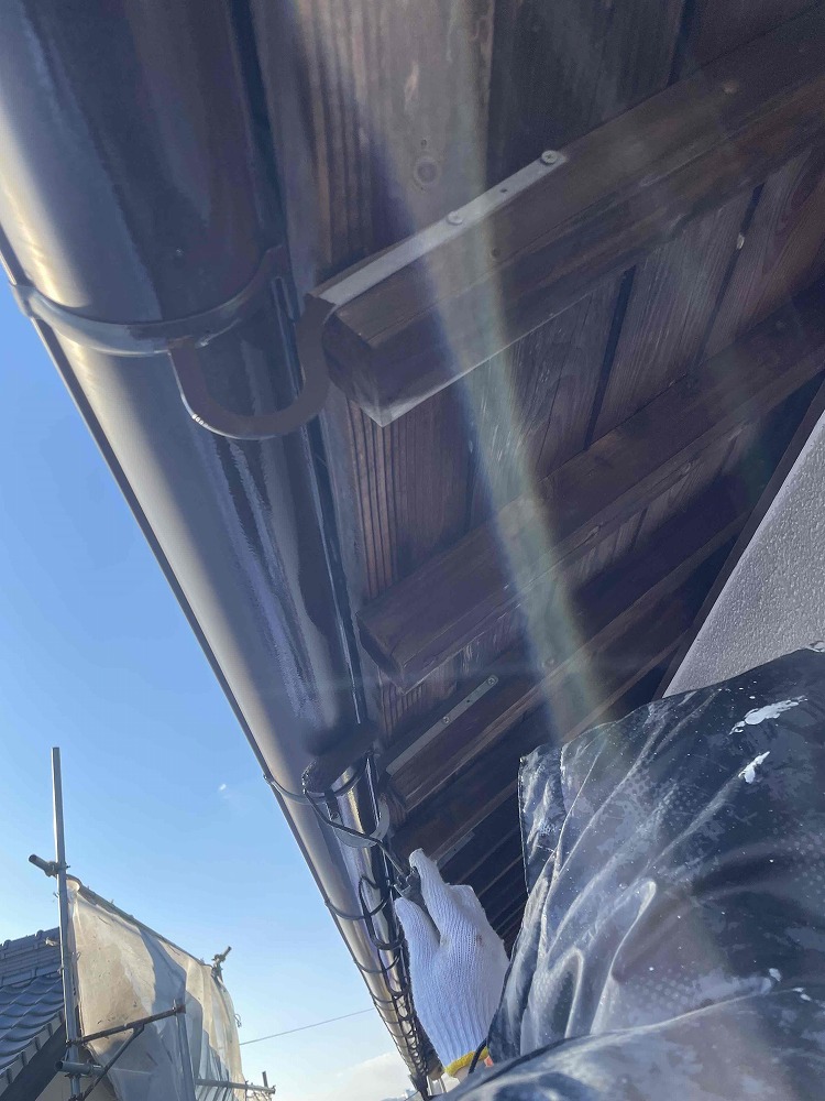香川県高松市香川町にて、本日雨樋塗装を行いました。