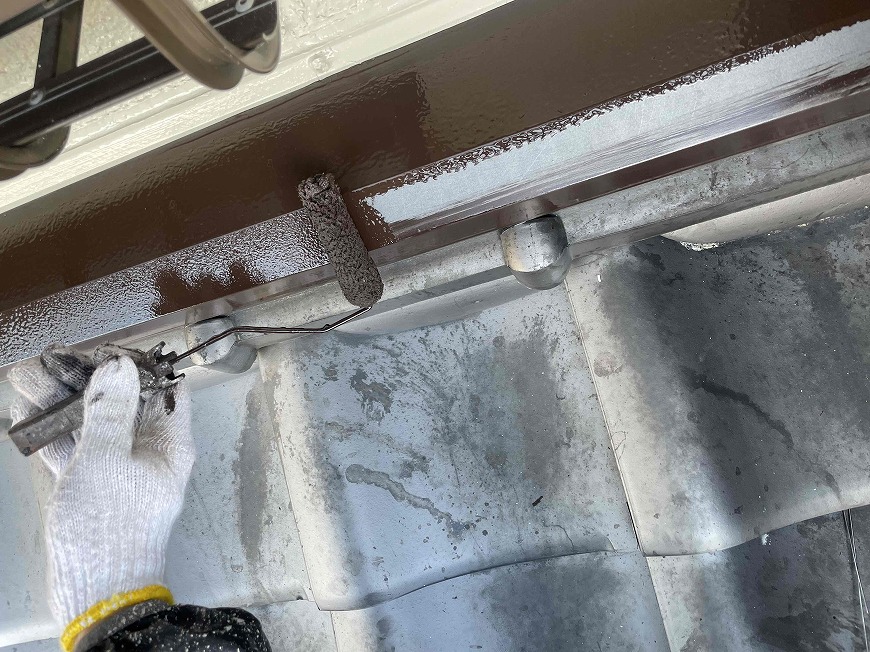 水切り板金の塗装を行いました。本日工事9日目(香川県高松市香川町)