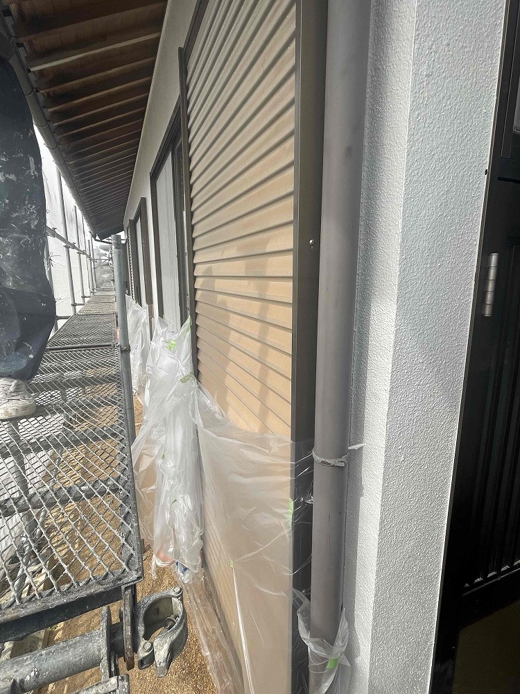 雨樋・破風・戸袋・雨戸塗装が残っており、あと2日程で完工の予定です。