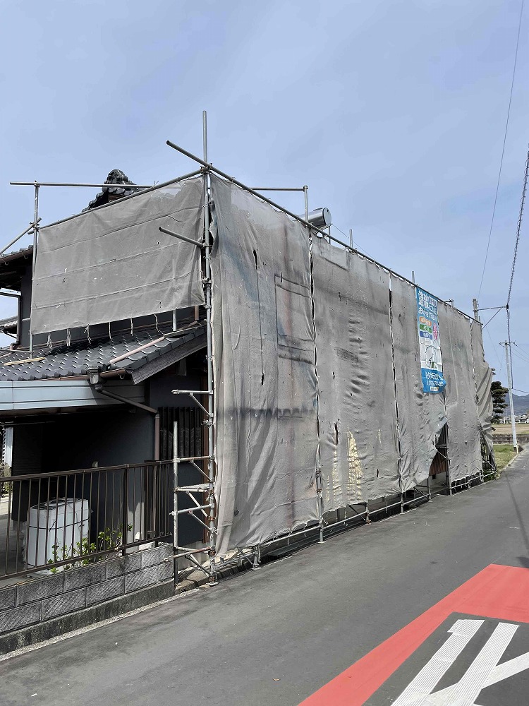 この工事の続きはこちらです → 外壁塗装工事、本日4日目!中塗り作業を行いました!(香川県木田郡三木町)