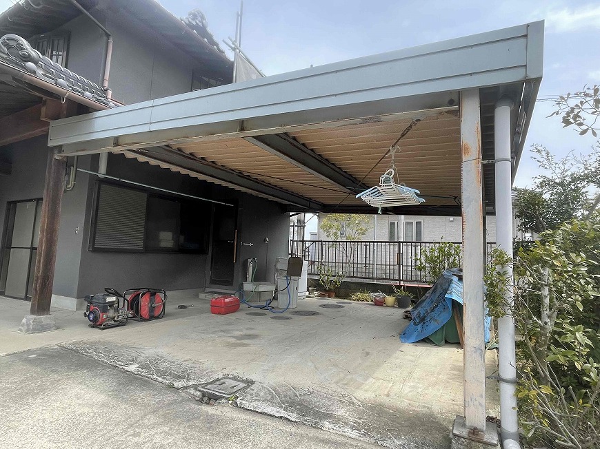 その後、納屋と繋がっている鉄筋の車庫の内部が錆びているので、お客様から追加塗装のご依頼を頂きました。