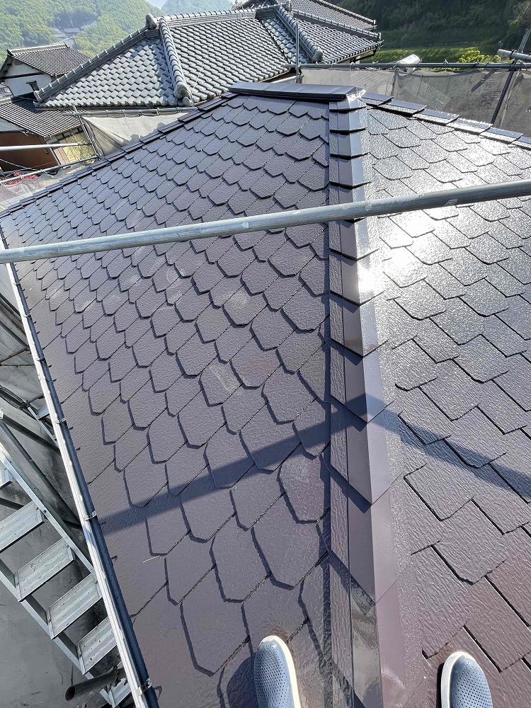 屋根・外壁塗装工事の屋根補修及び屋根・外壁の上塗りを行いました(香川県高松市香川町浅野)
