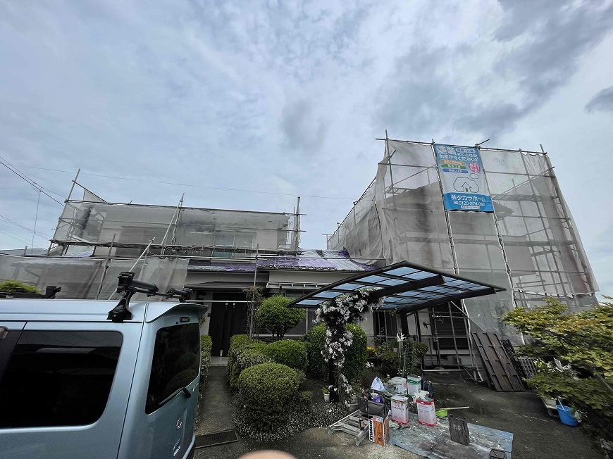 残りは手直し、戸袋・雨戸塗装、ベランダ防水工事が残っており、あと2日程で完工予定です。