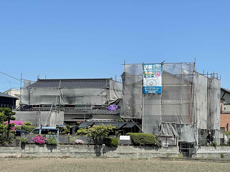 明日から5月5日までゴールデンウイークに入るので、5月6日に最後の工事を行い、翌日足場を解体する予定です。
