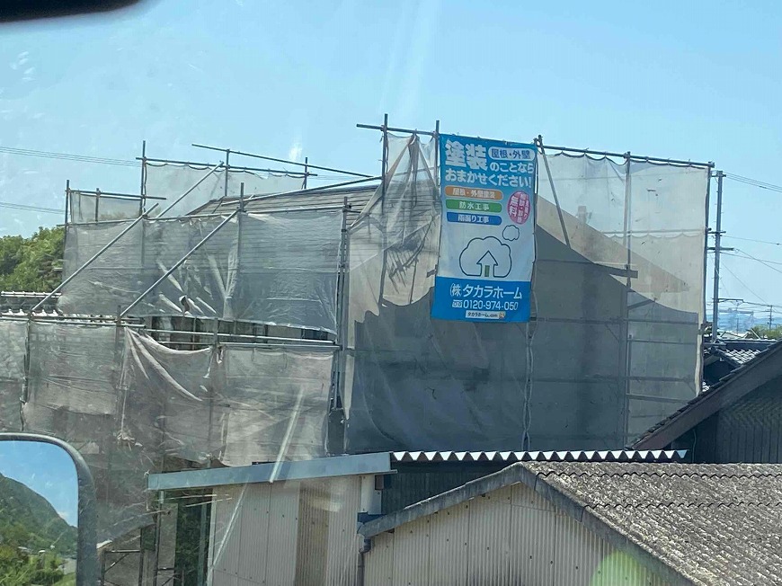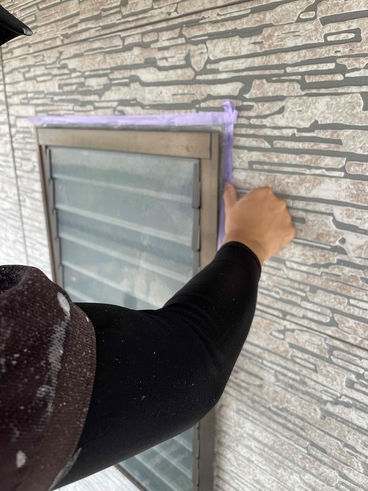 香川県坂出市西庄町I様邸にて、目地シーリング工事をする前のマスキングテープによる養生作業を行いました。