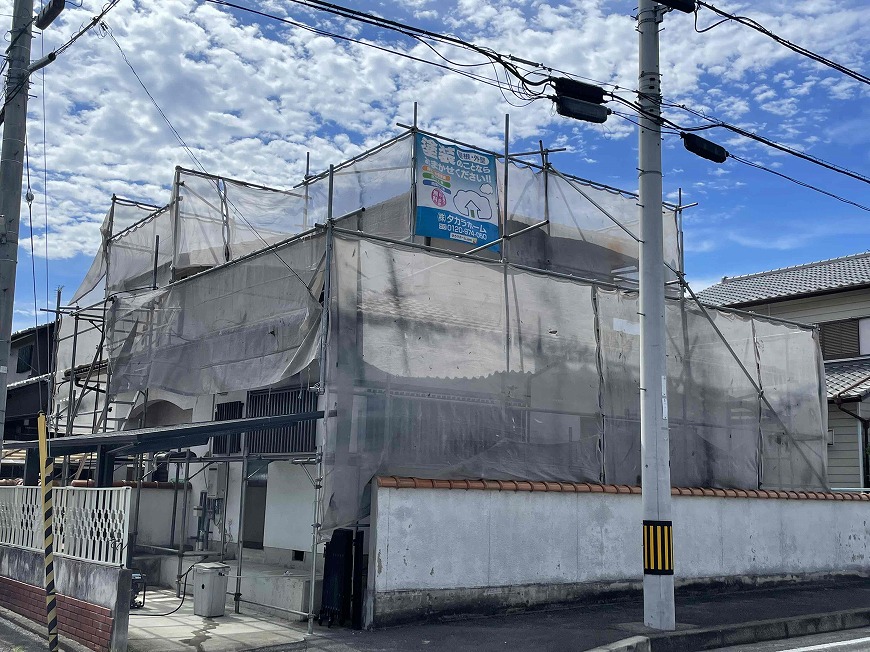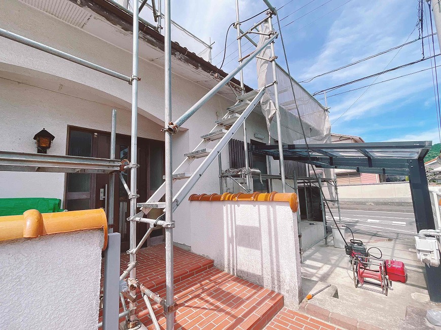 香川県さぬき市志度にて屋根・外壁塗装工事と塀塗装工事を着工致しました。