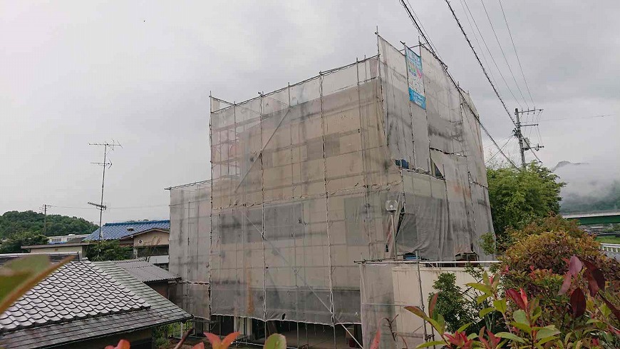 香川県東かがわ市水主にて、2日間かけて足場設置を行いました。