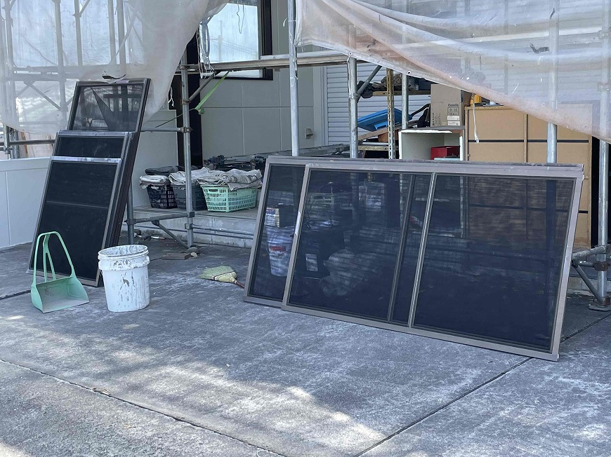 網戸の張替えは倉庫で行ってから現場に持ってきて取り付けを行いました。