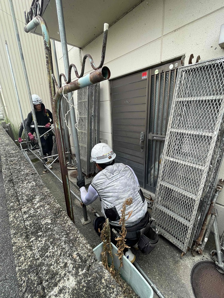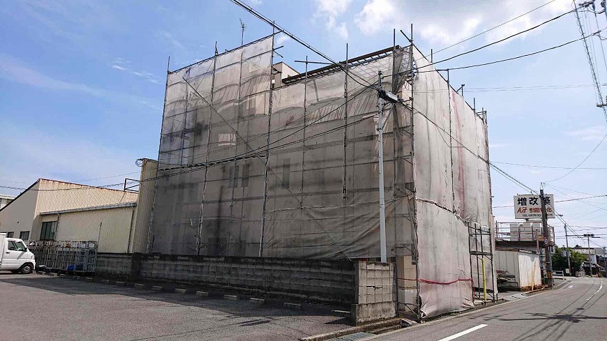 物件が大きく、昨日足場を組み本日養生シートを作業を行い、全部で2日かかりました。