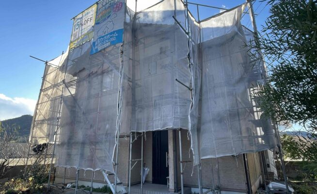 香川県さぬき市末の外壁塗装工事の足場を設置いたしました!