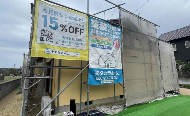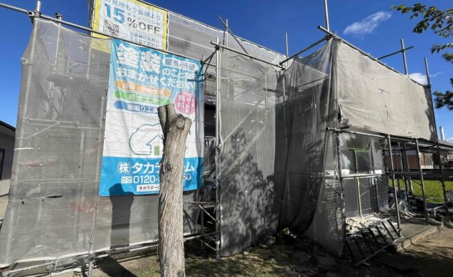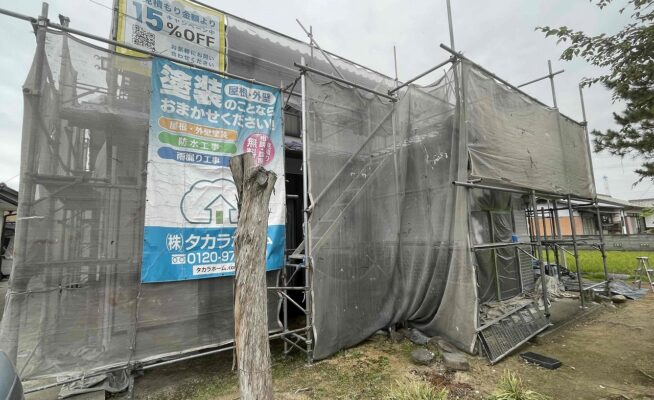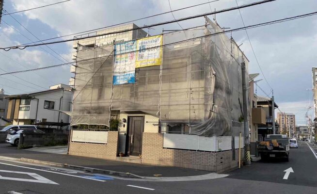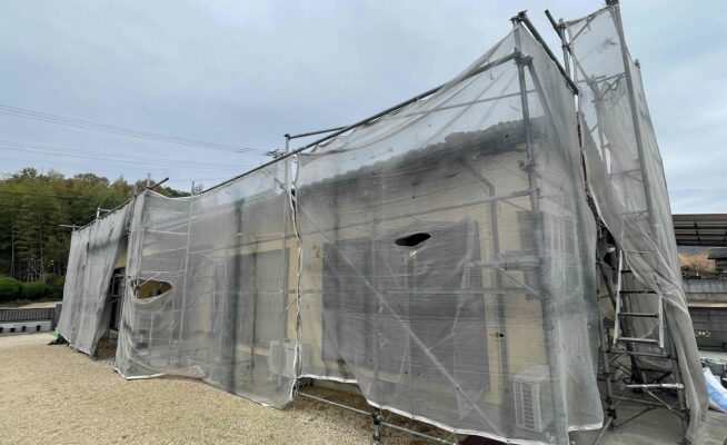 香川県高松市錦町にて外壁塗装工事の足場を設置いたしました!