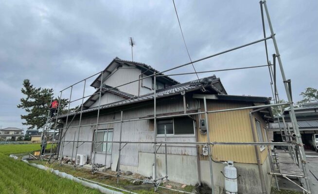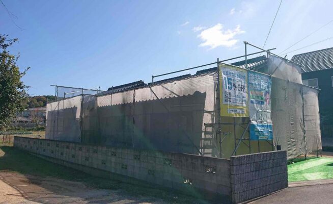 香川県東かがわ市にて外壁塗装工事の足場を設置いたしました!