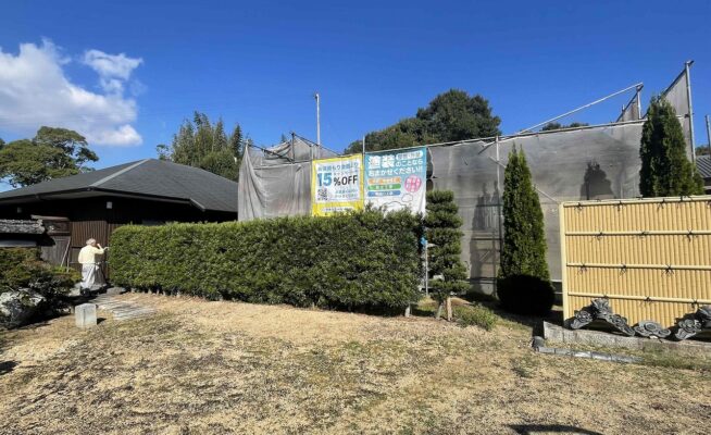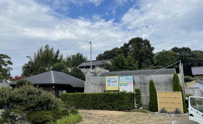 香川県高松市太田上町にて瓦葺き替え工事の足場を設置いたしました!