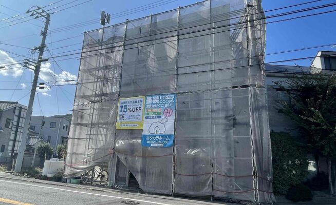 香川県さぬき市鴨部にて外壁塗装工事の足場を設置いたしました!