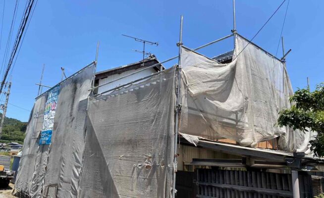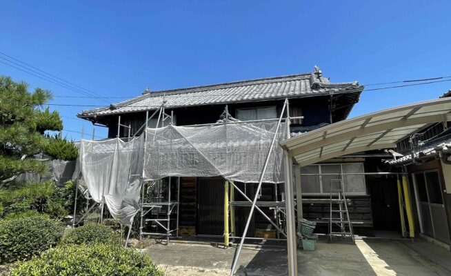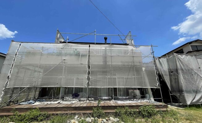香川県さぬき市末O様邸にて外壁塗装工事の足場を設置いたしました!