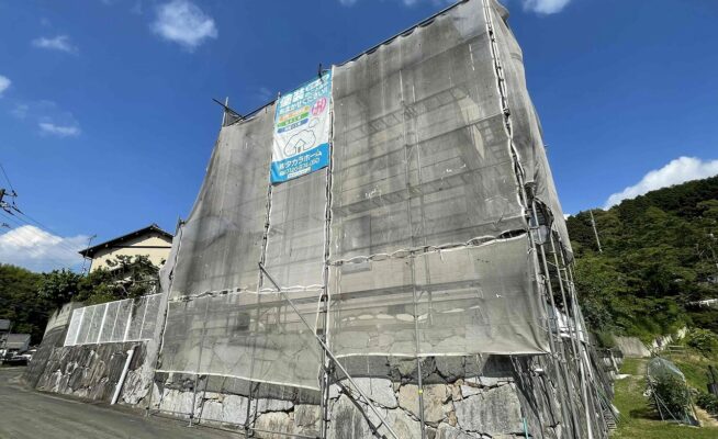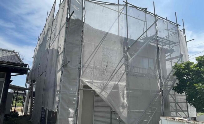 香川県高松市にて外壁塗装工事の養生作業とクラック補修を行いました!