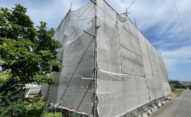 香川県高松市香川町M様邸にて外壁塗装工事の養生作業を行いました!