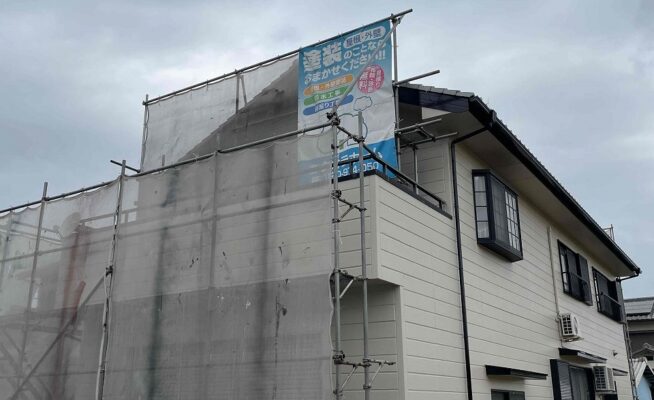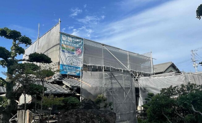 香川県高松市多肥上町Y様邸にて外壁塗装工事の足場を設置いたしました!