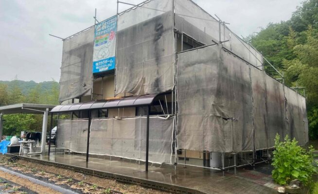 香川県高松市塩江町M様邸にて屋根・外壁塗装工事の足場を設置いたしました!