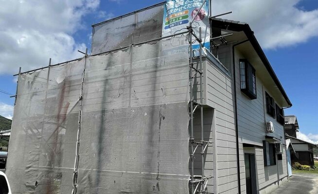 香川県高松市塩江町M様邸にて外壁塗装工事の養生作業を行いました!