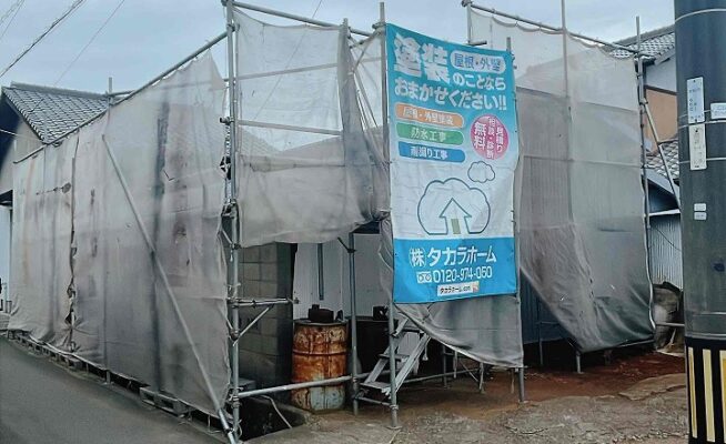 香川県高松市香南町西庄O様邸にて外壁塗装工事の養生作業を行いました!