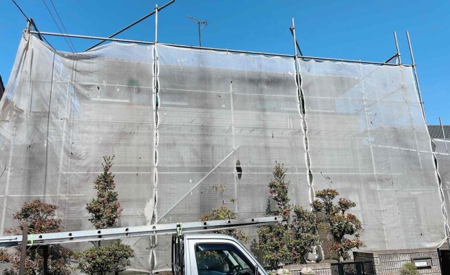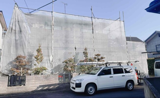 香川県高松市香南町西庄K様邸にて外壁塗装工事の足場を設置いたしました!