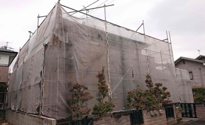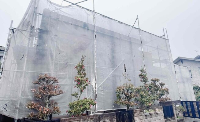 香川県綾川郡綾川町陶K様邸にて外壁塗装工事の足場設置が完了いたしました!