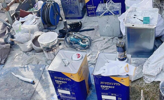 香川県綾川郡綾川町陶K様邸にて養生作業と下塗り塗装を行いました!