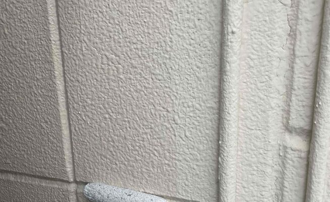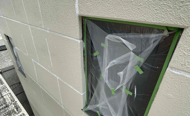 外壁塗装、ベランダ防水工事の養生作業とクラック補修を行いました(香川県東かがわ市引田)