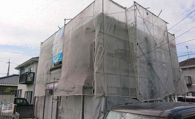 屋根葺き替え工事・外壁塗装工事の足場を設置いたしました(香川県高松市国分寺町)