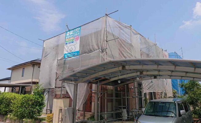 屋根・外壁塗装工事の養生作業を行いました(香川県東かがわ市水主)