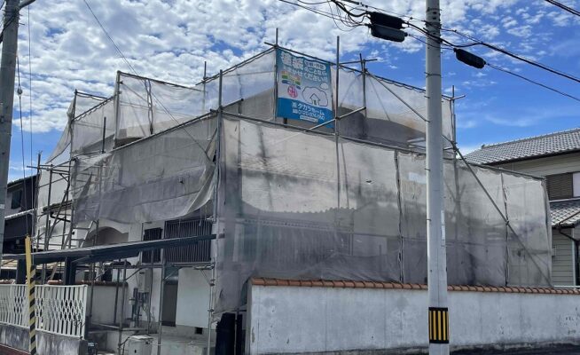 外壁塗装工事の足場設置が完了いたしました。(香川県高松市林町)