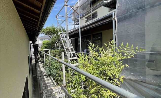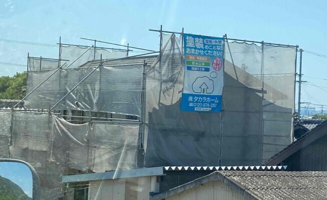 屋根・外壁塗装、目地シーリング工事の足場を設置致しました(香川県坂出市西庄町)