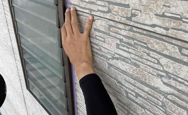 屋根・外壁塗装、目地コーキング工事の目地の養生作業を行いました(香川県坂出市西庄町)